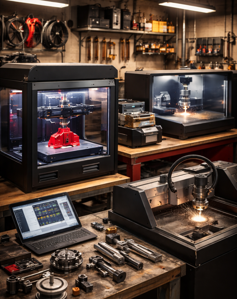 Ich möchte eine breite Palette an Möglichkeiten bieten für die Einzelanfertigung, den Prototypenbau und die Kleinserienproduktion. Dafür habe ich bereits einen kleinen Maschinenpark, von 3D-FDM Drucker, über die Drehbank, die Sandstrahlkabine und die Schweißgeräte bis zum Laser.